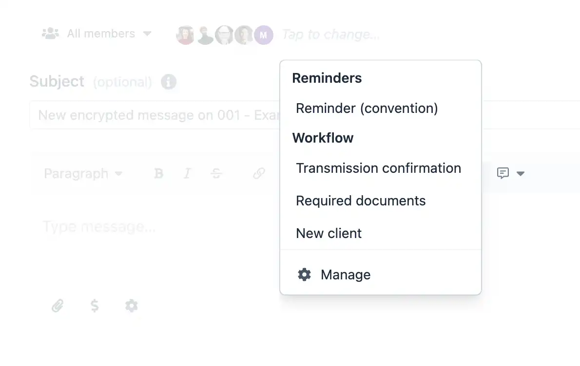 A secure space is an encrypted communication tunnel offering client-messaging and an array of features, modules and possibilities to simplify your confidential data transfers.